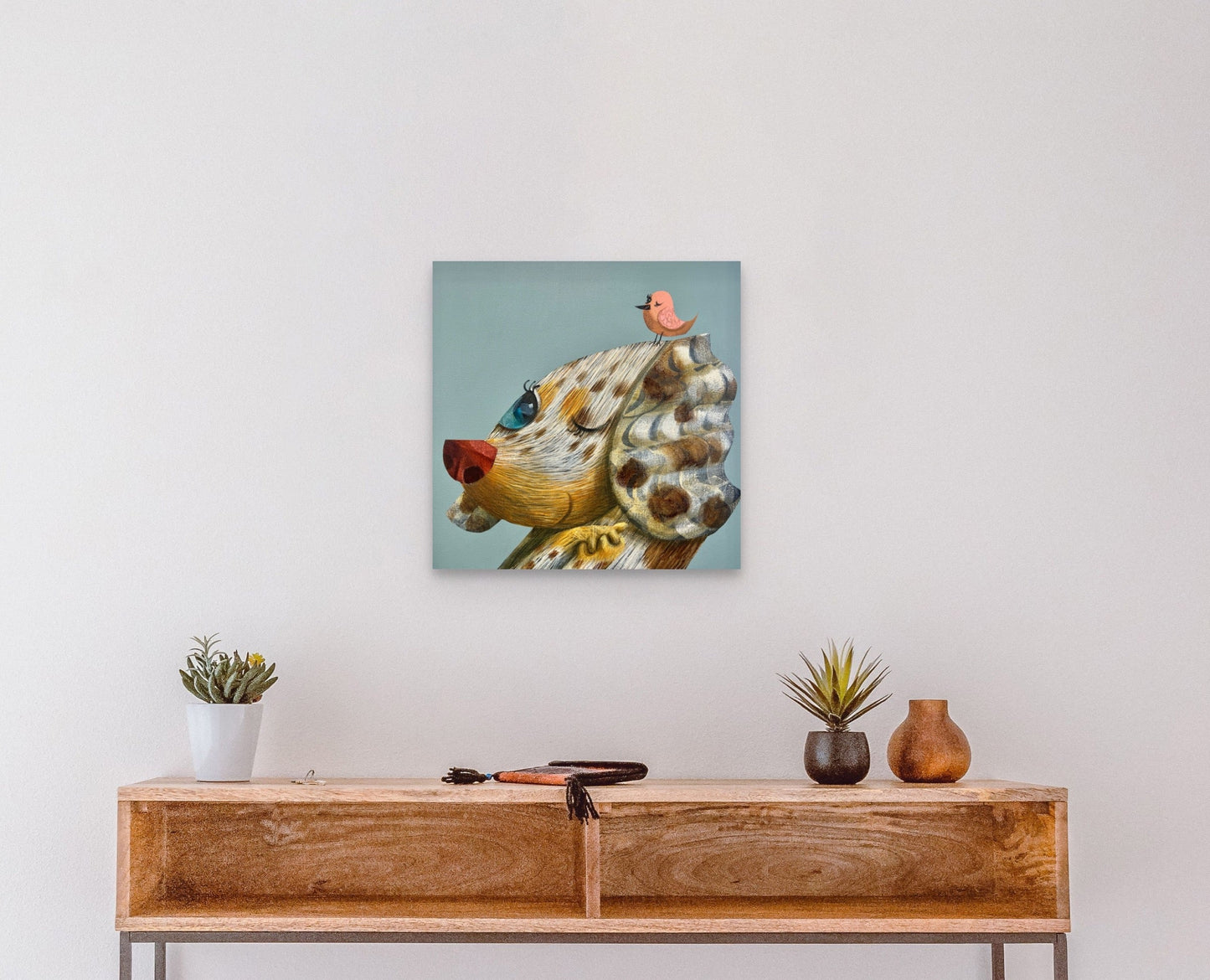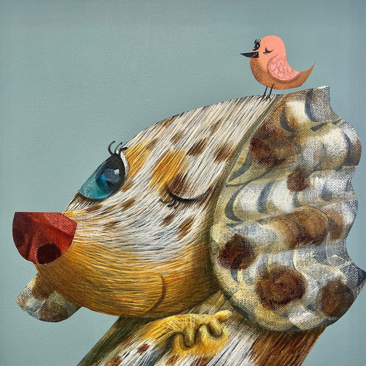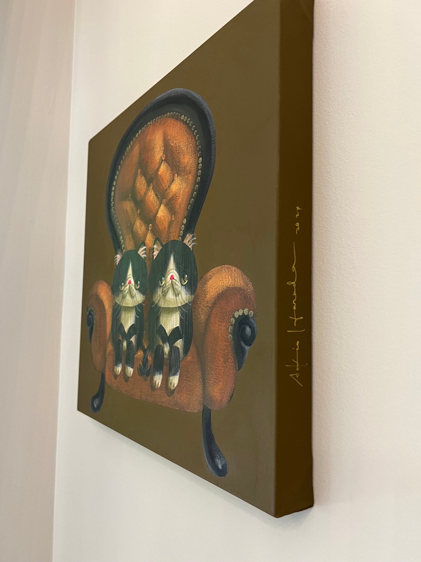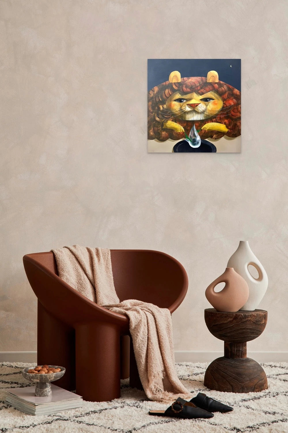 Il utilise une palette de couleurs variées mais avec des tons sobres, ce qui permet à ses œuvres de s'harmoniser parfaitement avec les espaces de vie, comme si elles en faisaient partie intégrante. En employant des formes animales, il est capable de représenter les émotions humaines tout en naviguant entre réalité et imaginaire.