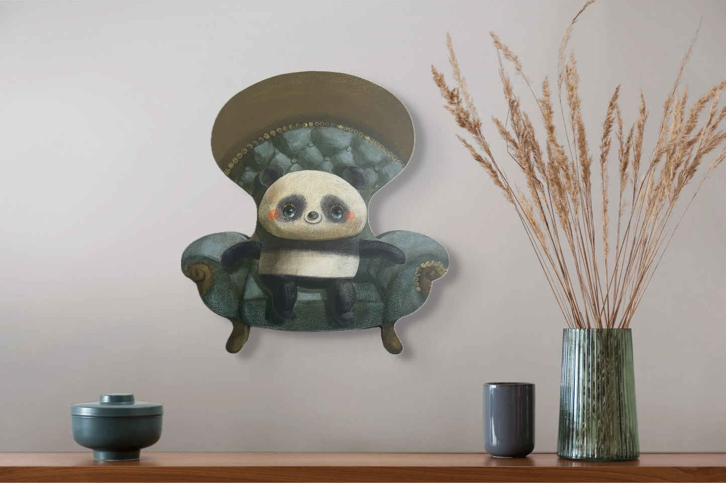 La jolie image « Mark Panda » montre un panda mignon assis sur un fauteuil vert opulent aux accents dorés et aux bordures touffues. Le panda respire la chaleur et l'innocence avec son visage rond, ses joues roses et ses yeux brillants et étincelants. Sa posture décontractée et les textures de sa fourrure moelleuse créent une ambiance chaleureuse et charmante. Le canapé sophistiqué et l'attitude espiègle du panda donnent à cette pièce originale une touche raffinée. L'œuvre d'art invite les spectateurs dans un monde heureux et créatif en capturant un délicieux équilibre entre élégance et charme.