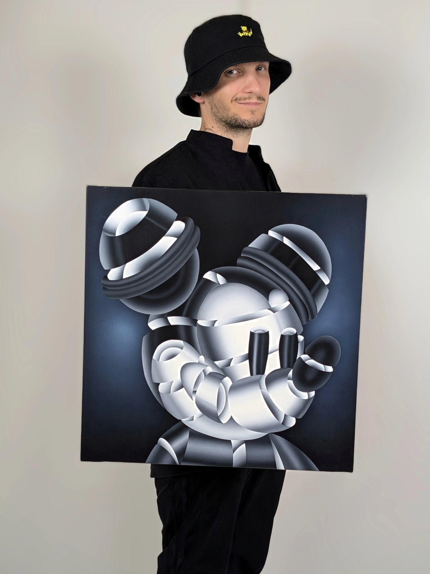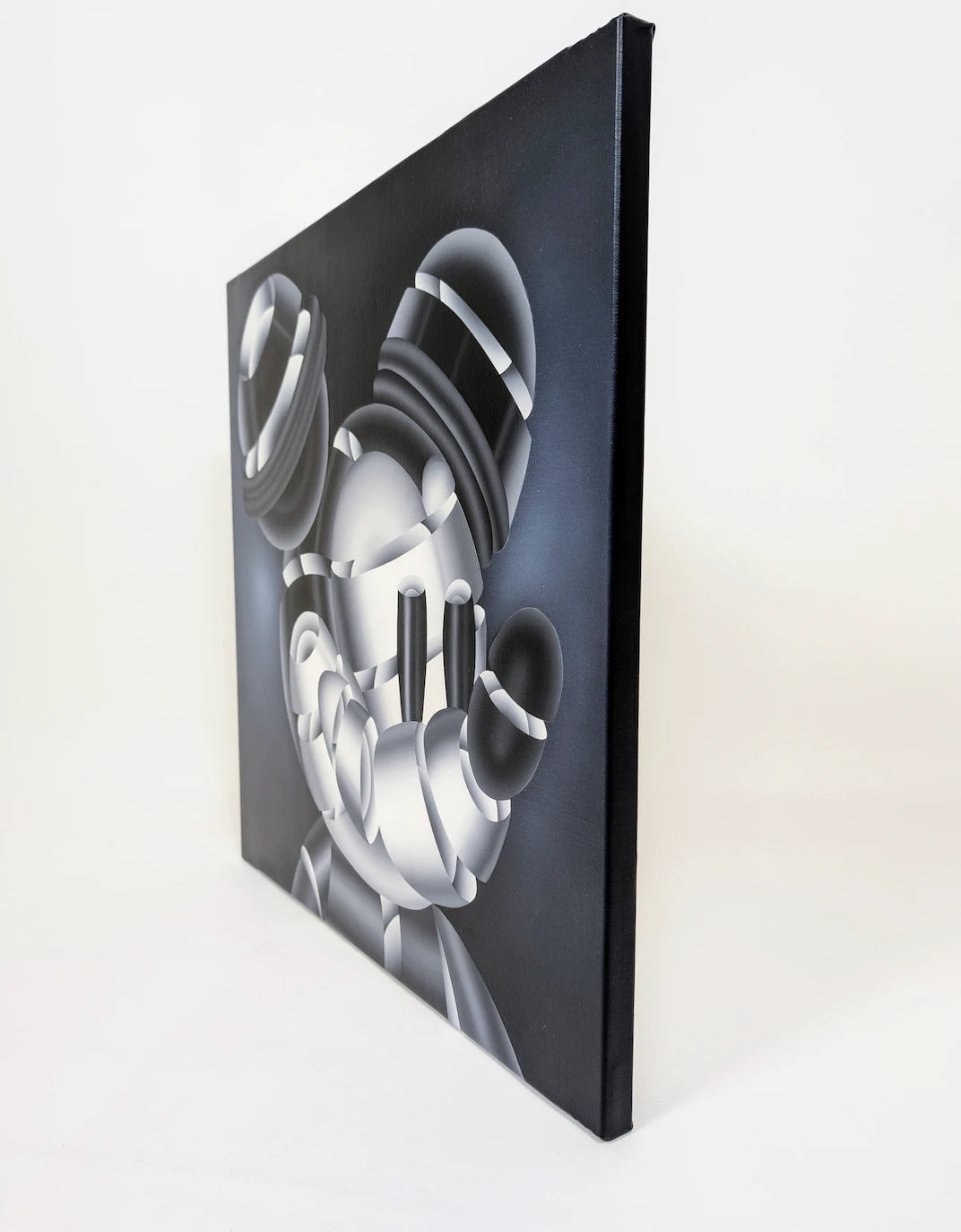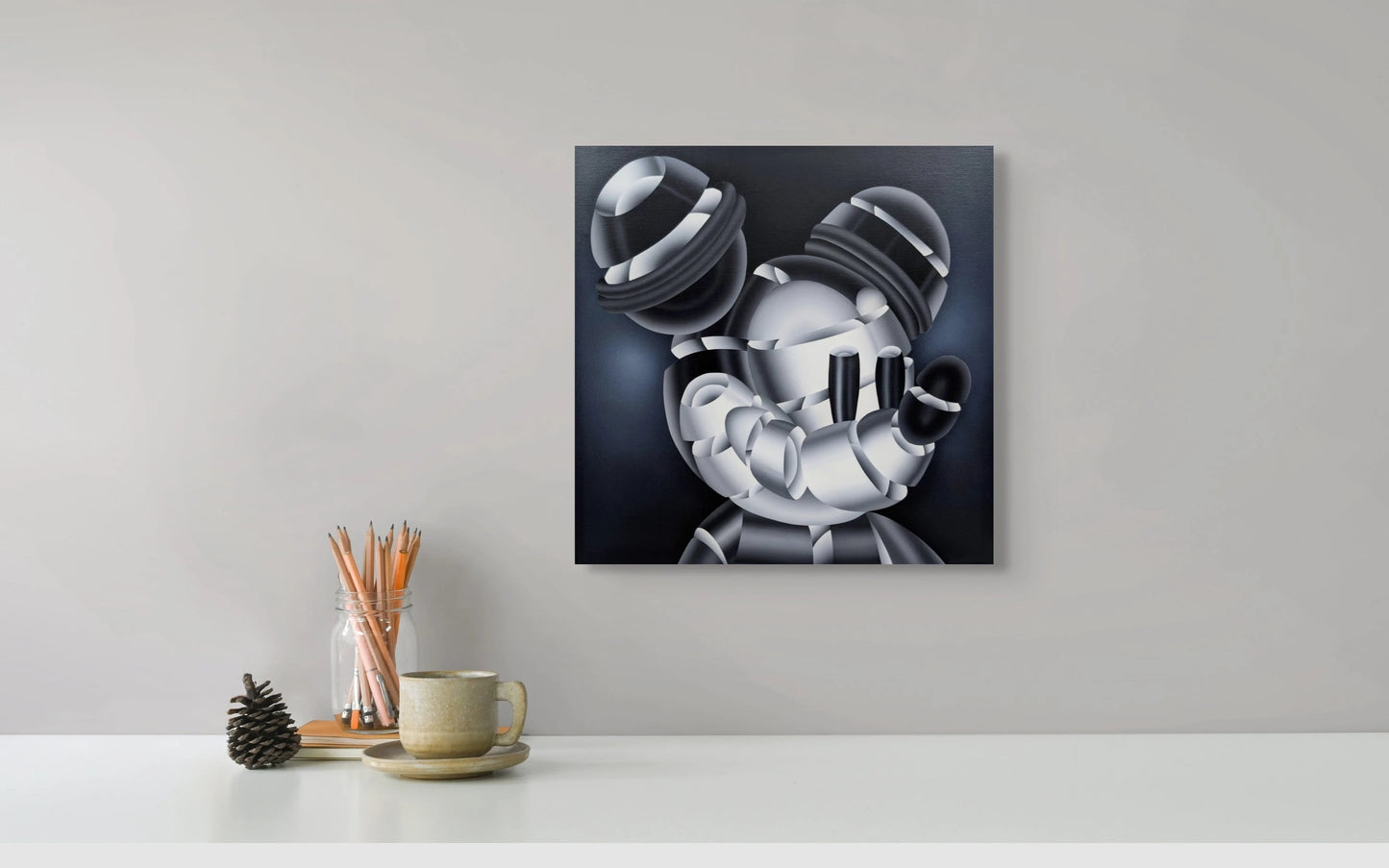 Cette œuvre déconstruit l'une des icônes les plus reconnaissables de la culture pop en formes géométriques et mécaniques. Elle s'intéresse à la reproduction et à la marchandisation sans fin de tels personnages, questionnant leur place dans une société de consommation.