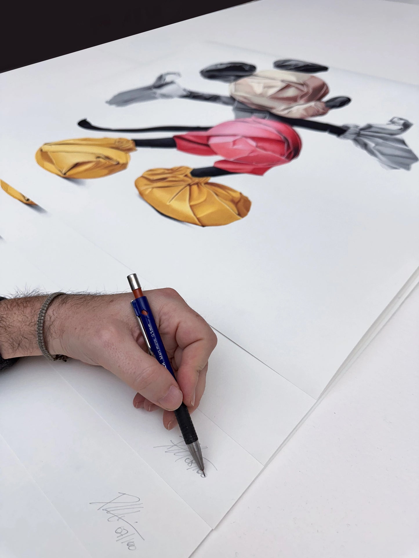 J’ai toujours été fasciné par les créations hyperréalistes, mais aussi déçu par la variété limitée de sujets et de techniques que je voyais autour de moi : quantité de portraits à l’huile, de paysages ou de fleurs… Ayant étudié et travaillé dans le domaine du design de produits à Milan pendant dix ans, je me suis naturellement tourné vers les objets, attiré par leur esthétique, leurs textures, leurs matériaux et leurs volumes. Je puise mon inspiration dans les histoires qu’ils racontent, leurs personnalités, l’ingéniosité de leurs concepteurs et leur univers caché. À un certain point, j’ai simplement senti qu’il fallait combiner ces deux passions afin de créer des œuvres originales et captivantes.