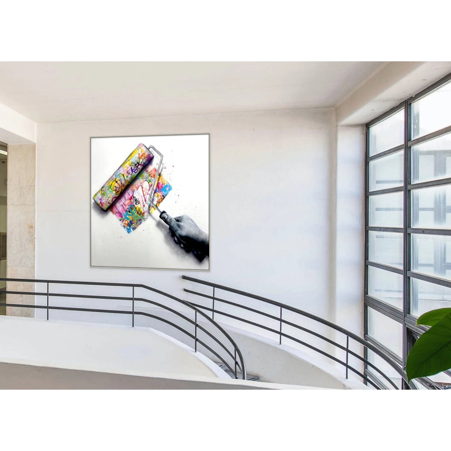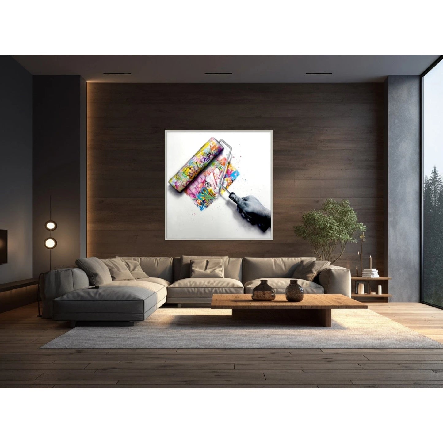 "Roll Your Style & Color Your Life" est une œuvre d'art captivante du célèbre street artiste français Onemizer. D'une taille saisissante de 200 x 200 cm (6,5 x 6,5 pieds), cette œuvre délivre un message convaincant sur le pouvoir transformateur de l'art et de la créativité.
