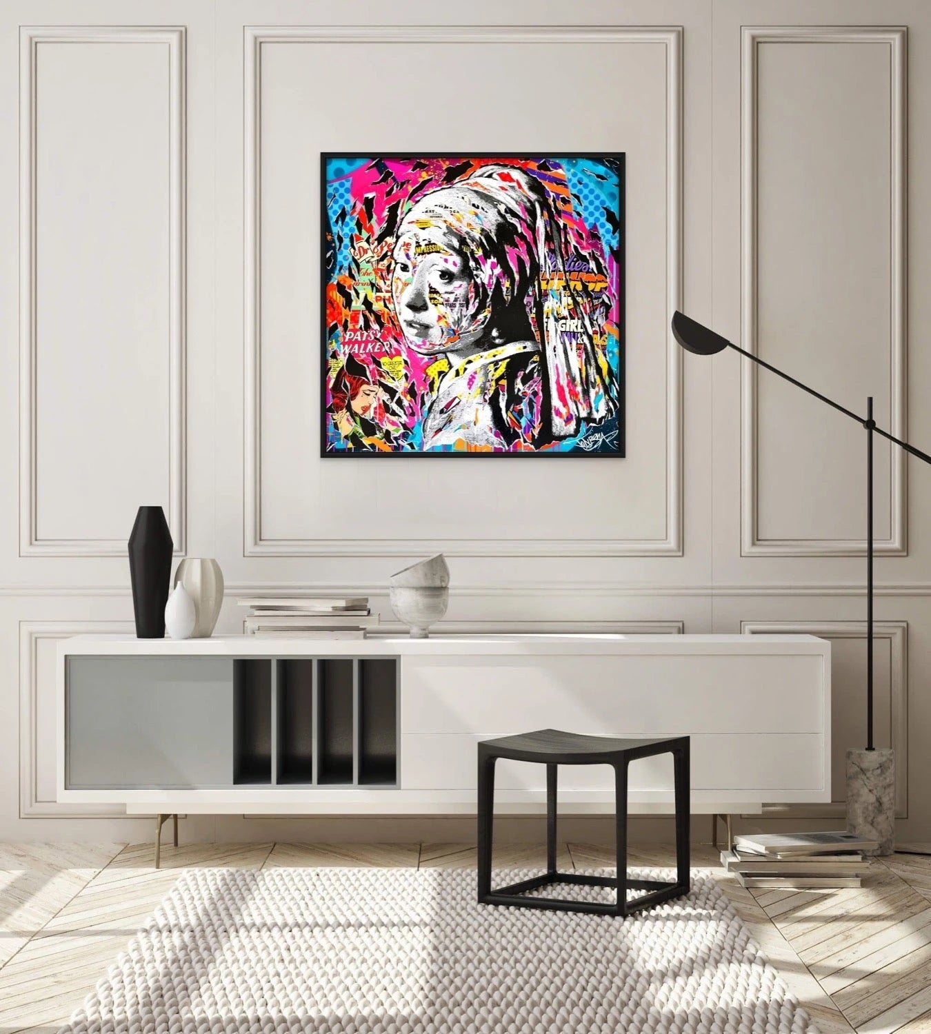 - Assistance : Médium mixte original, collage et acrylique sur toile tendue