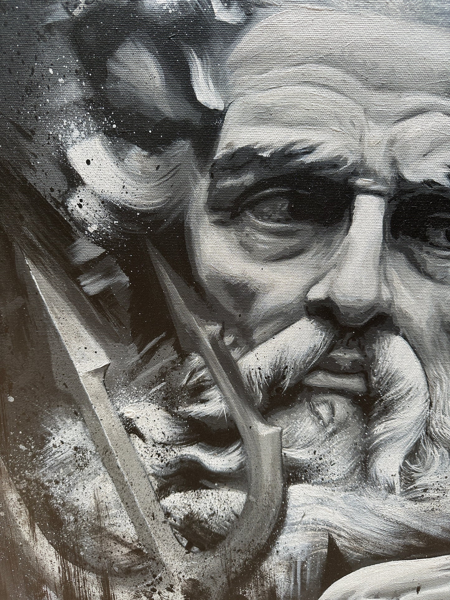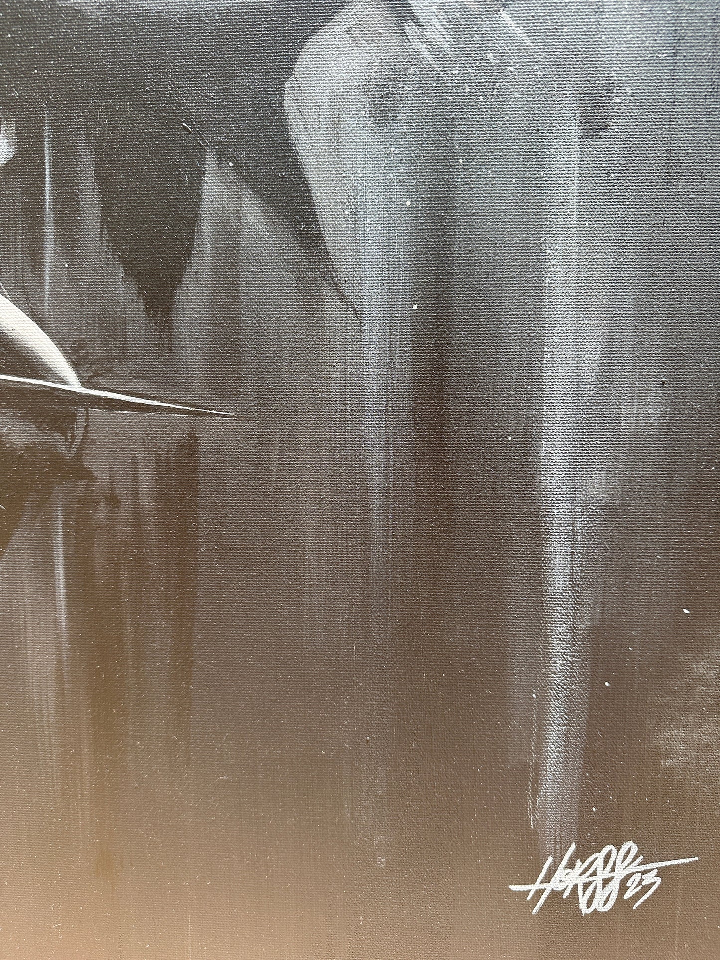 Depuis 2019, il s'est passionné pour la peinture avec un style assez réaliste et un univers en noir et blanc. Il adapte ses créations sur des supports éclectiques, qu'il crée ou réutilise.