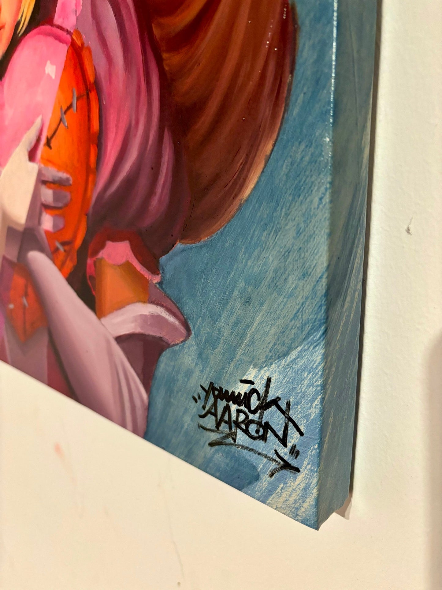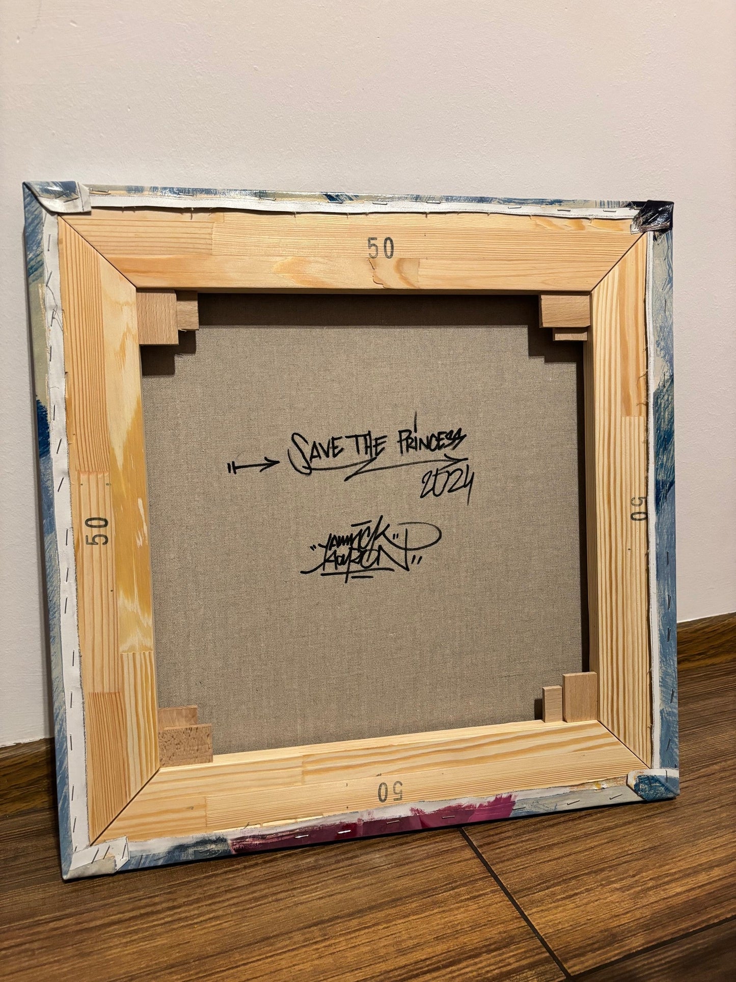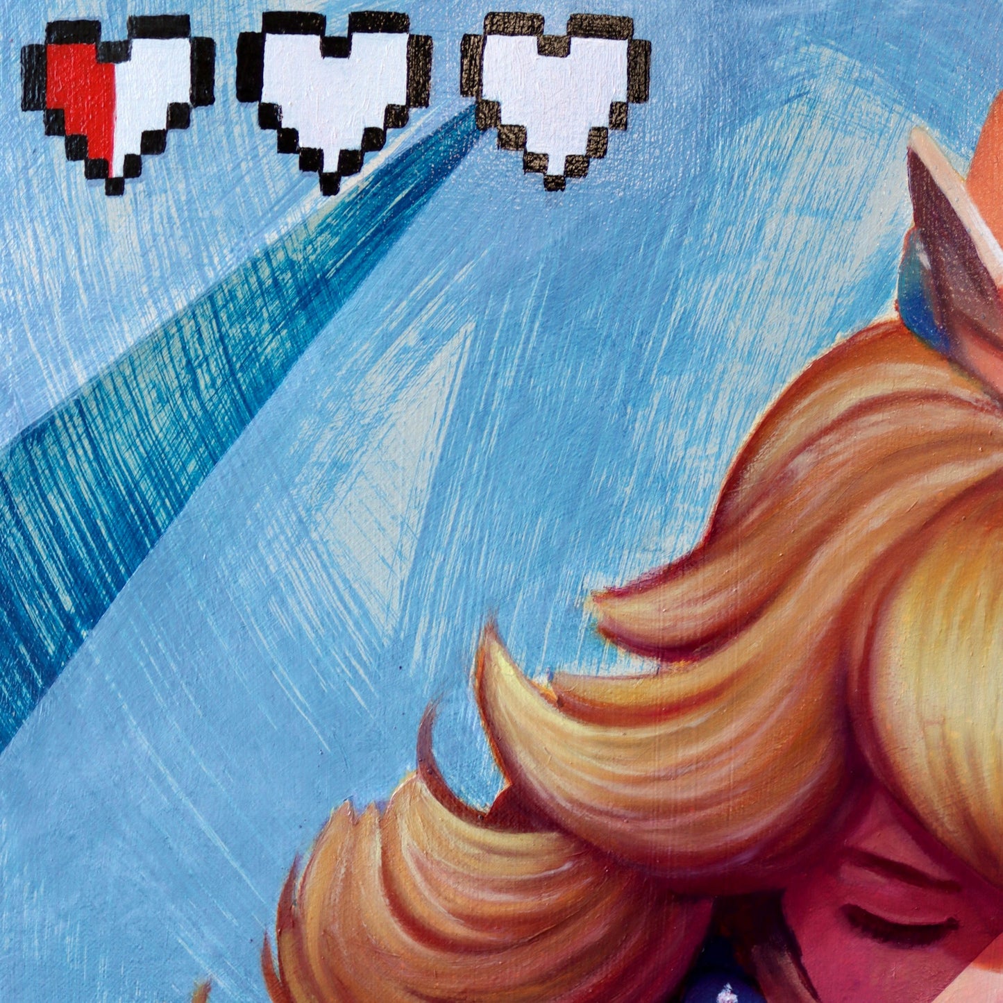 Cette peinture sur toile présente une fusion de médiums acryliques et à l'huile, offrant une princesse stylisée et vivante tenant son cœur.