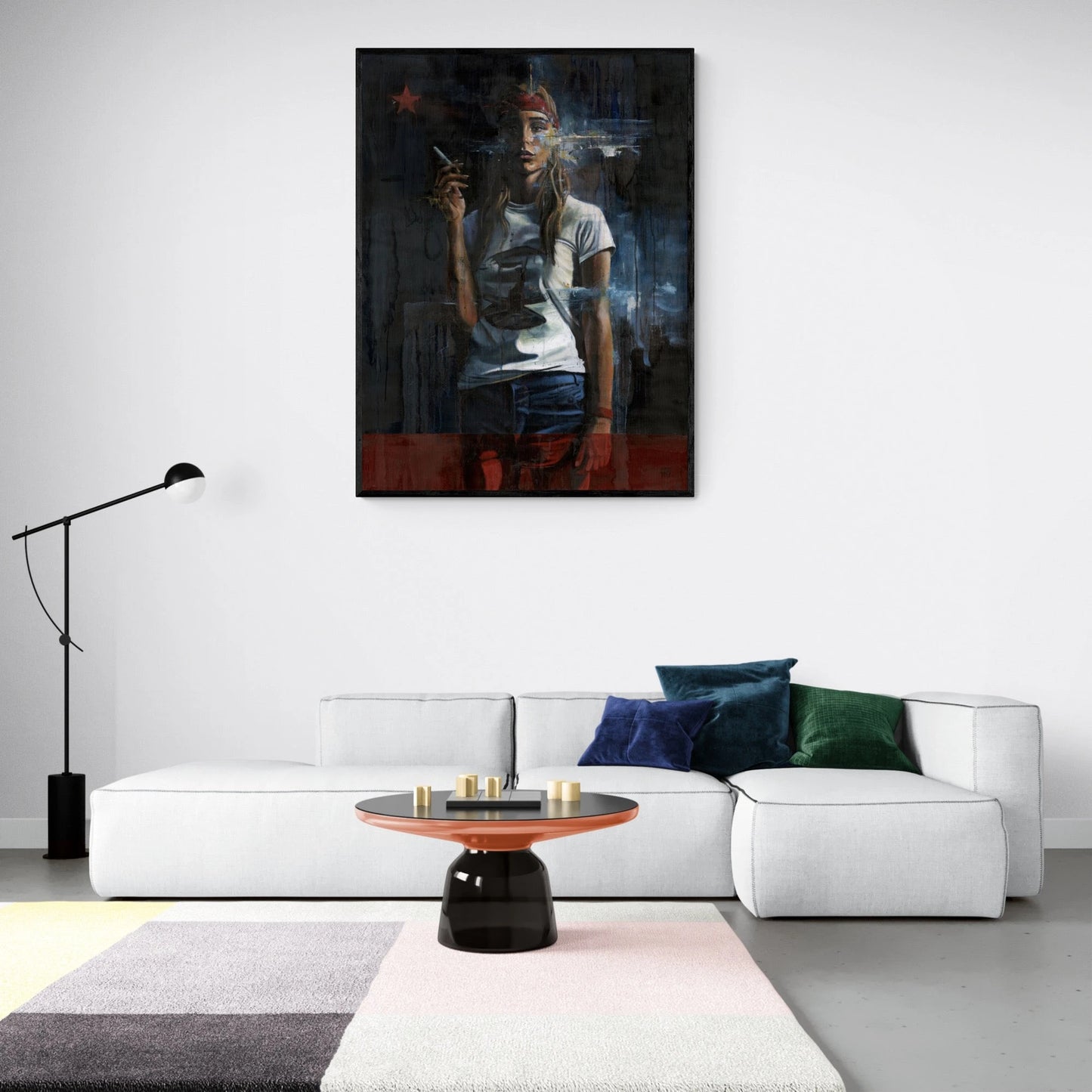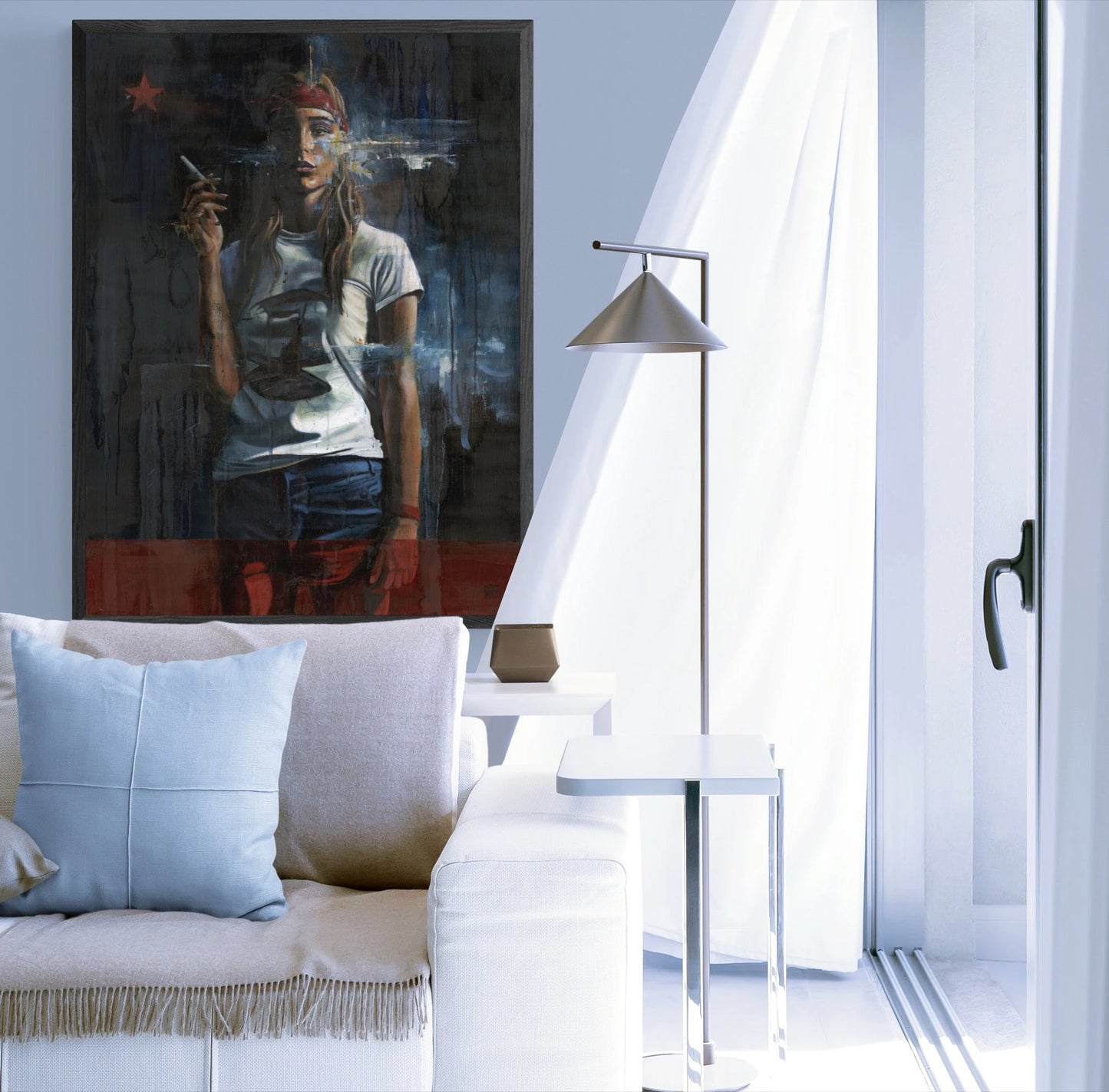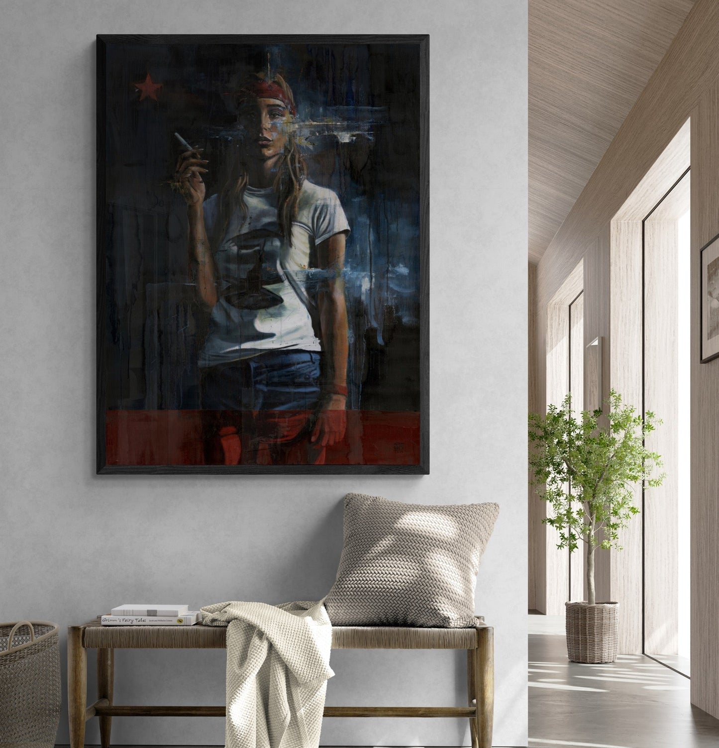 L'utilisation magistrale des peintures à l'huile par Questel confère un réalisme tactile à l'œuvre, invitant l'observateur à réfléchir à l'histoire derrière le regard contemplatif du sujet. La dimensionnalité de la peinture témoigne de l'habileté de Questel à représenter des états émotionnels complexes, faisant de « Serious Danger » un ajout résonnant à toute collection.