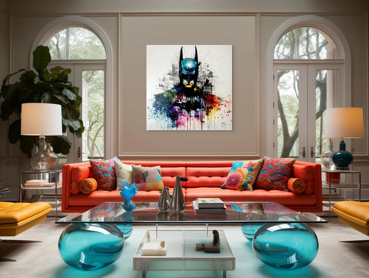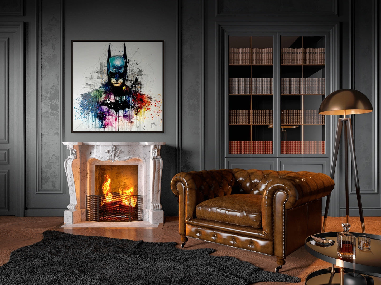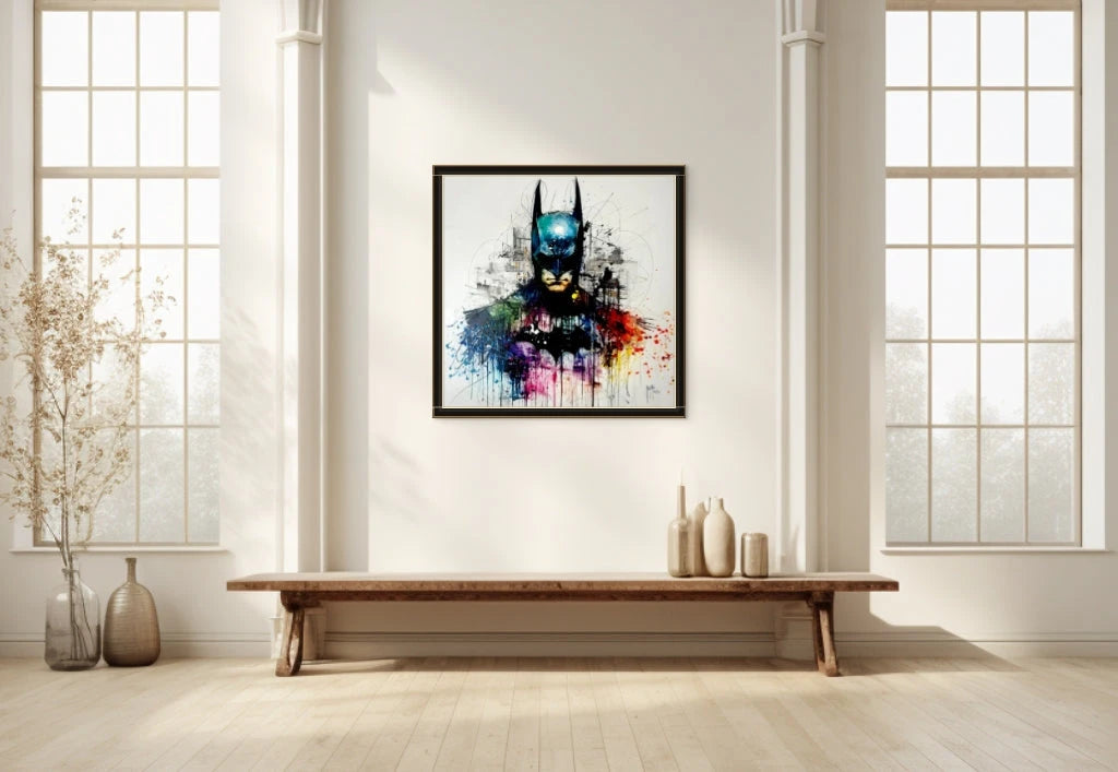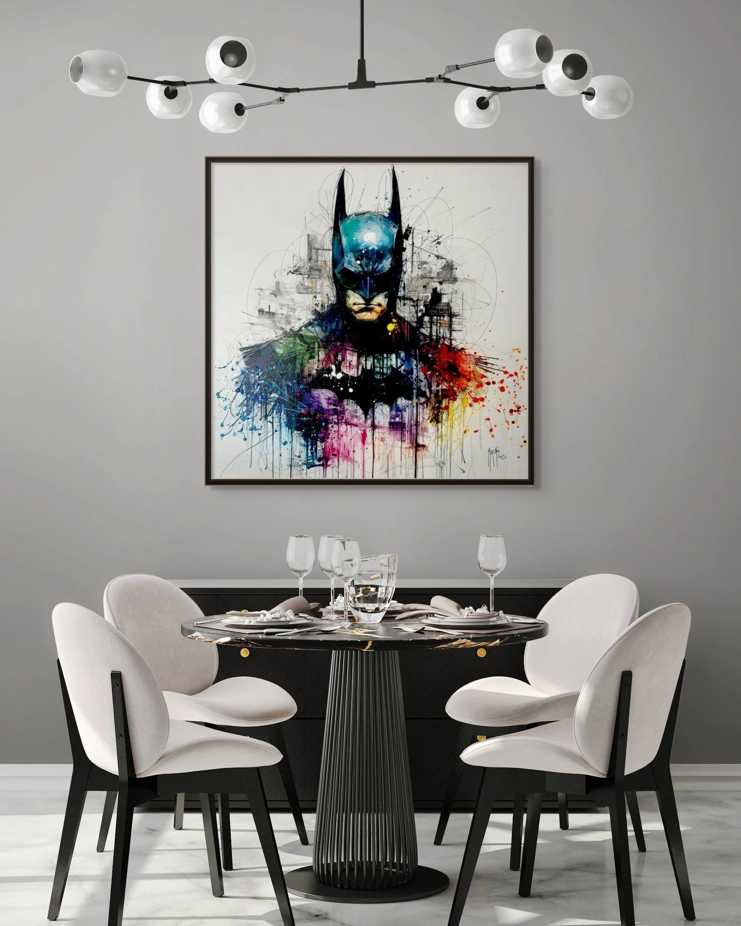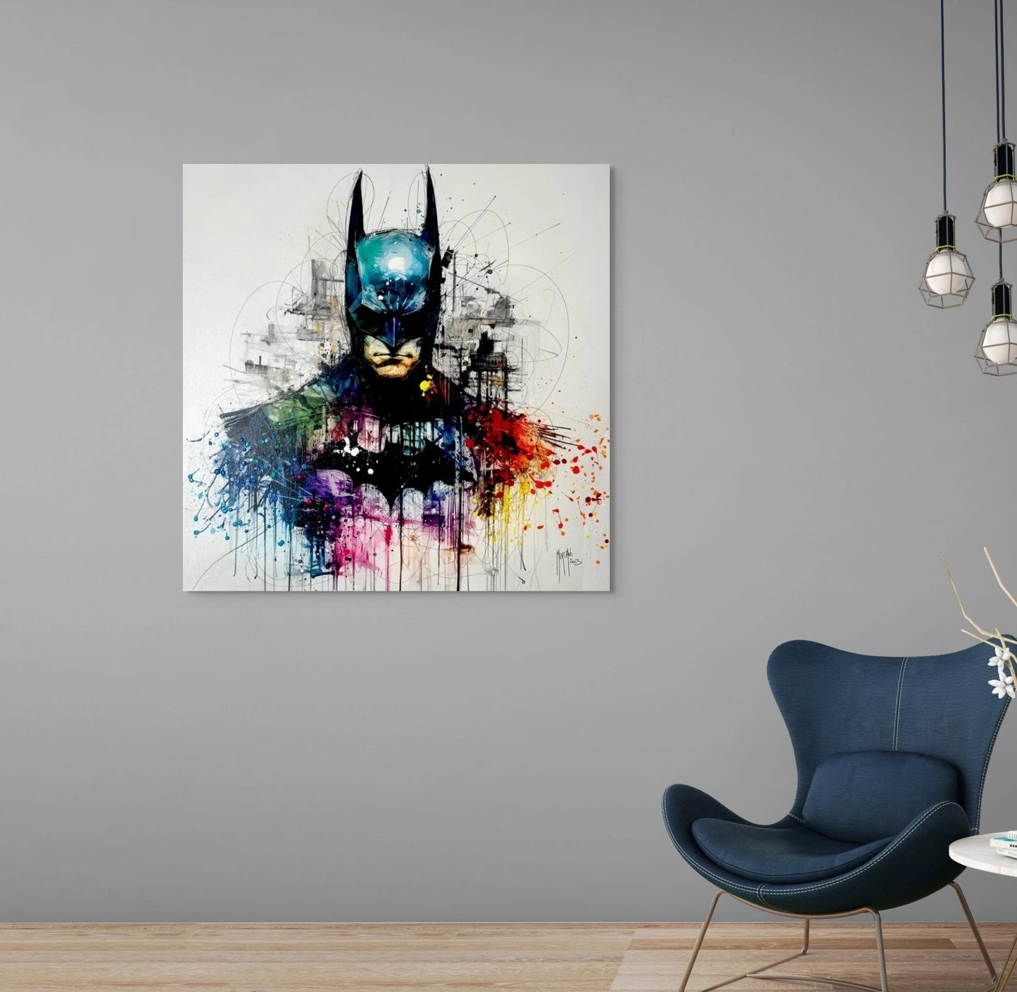 Cette peinture serait un ajout parfait pour les fans de Batman, ainsi que pour ceux qui apprécient l'art contemporain qui repousse les limites de l'imagerie traditionnelle des bandes dessinées.