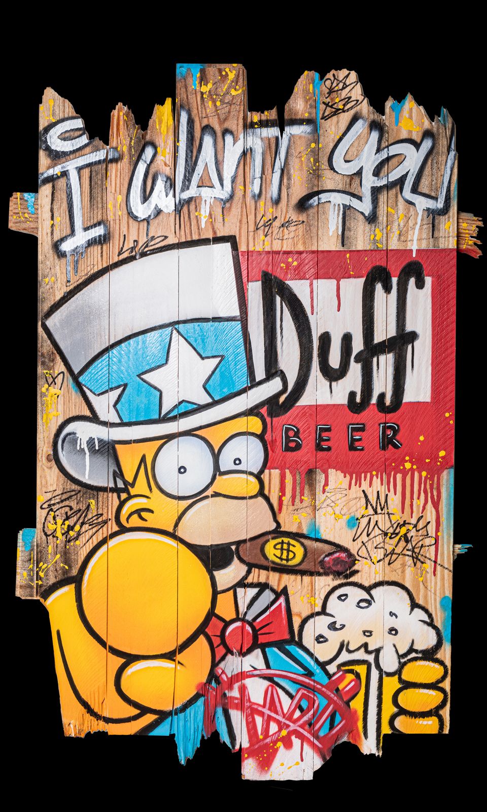 La simplicité des toiles choisies par Daru contraste frappamment avec le monde complexe et coloré qu'il peint dessus. En utilisant un mélange de peinture en bombe et de marqueurs, il fusionne les lignes entre l'illustration de bande dessinée et l'art urbain pour créer des chefs-d'œuvre vibrants et accrocheurs.