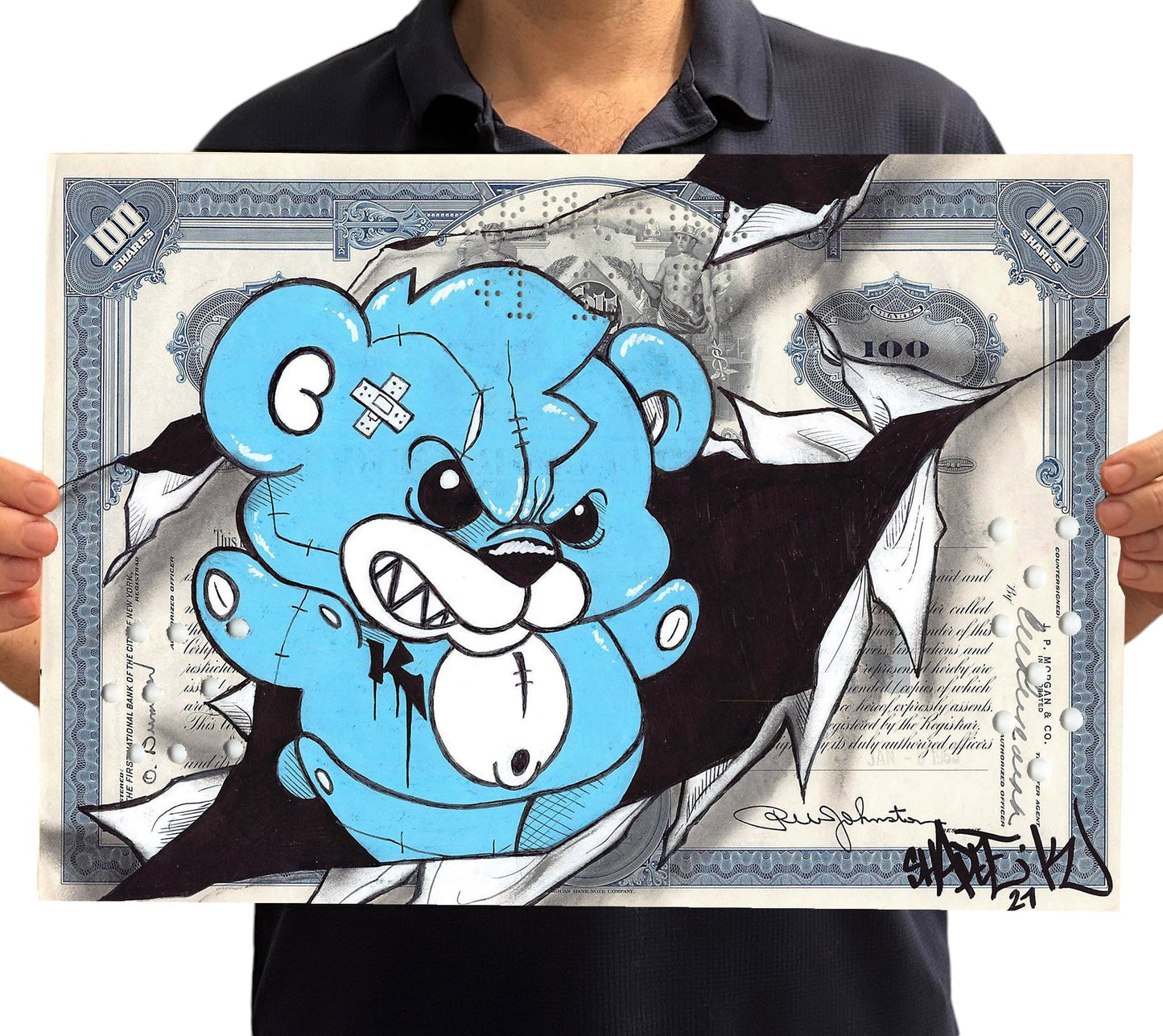 Fils des Frigo à Paris, il s'oriente rapidement vers le thème « ours en peluche », qu'il revisite aussi bien à travers des collages de rue que des œuvres uniques sur toile, papier, pancartes, billets de banque, body painting, etc…