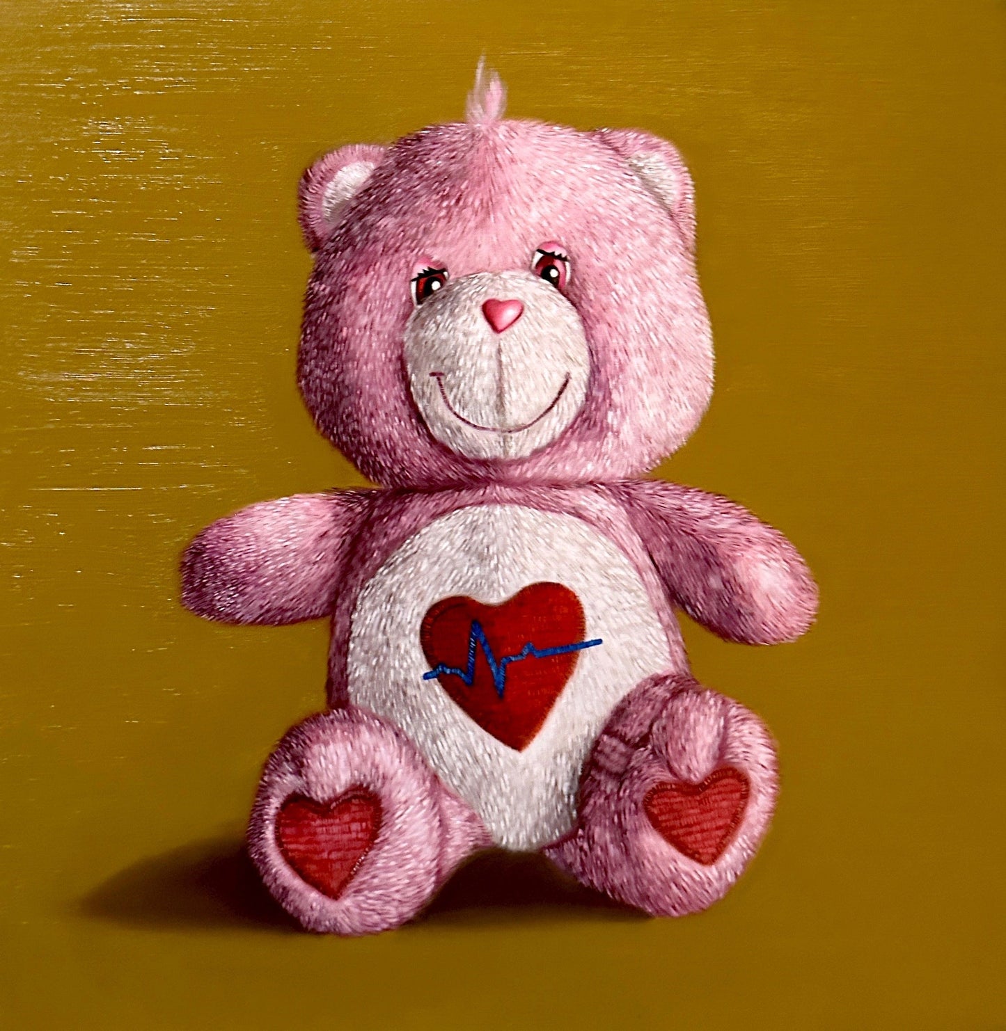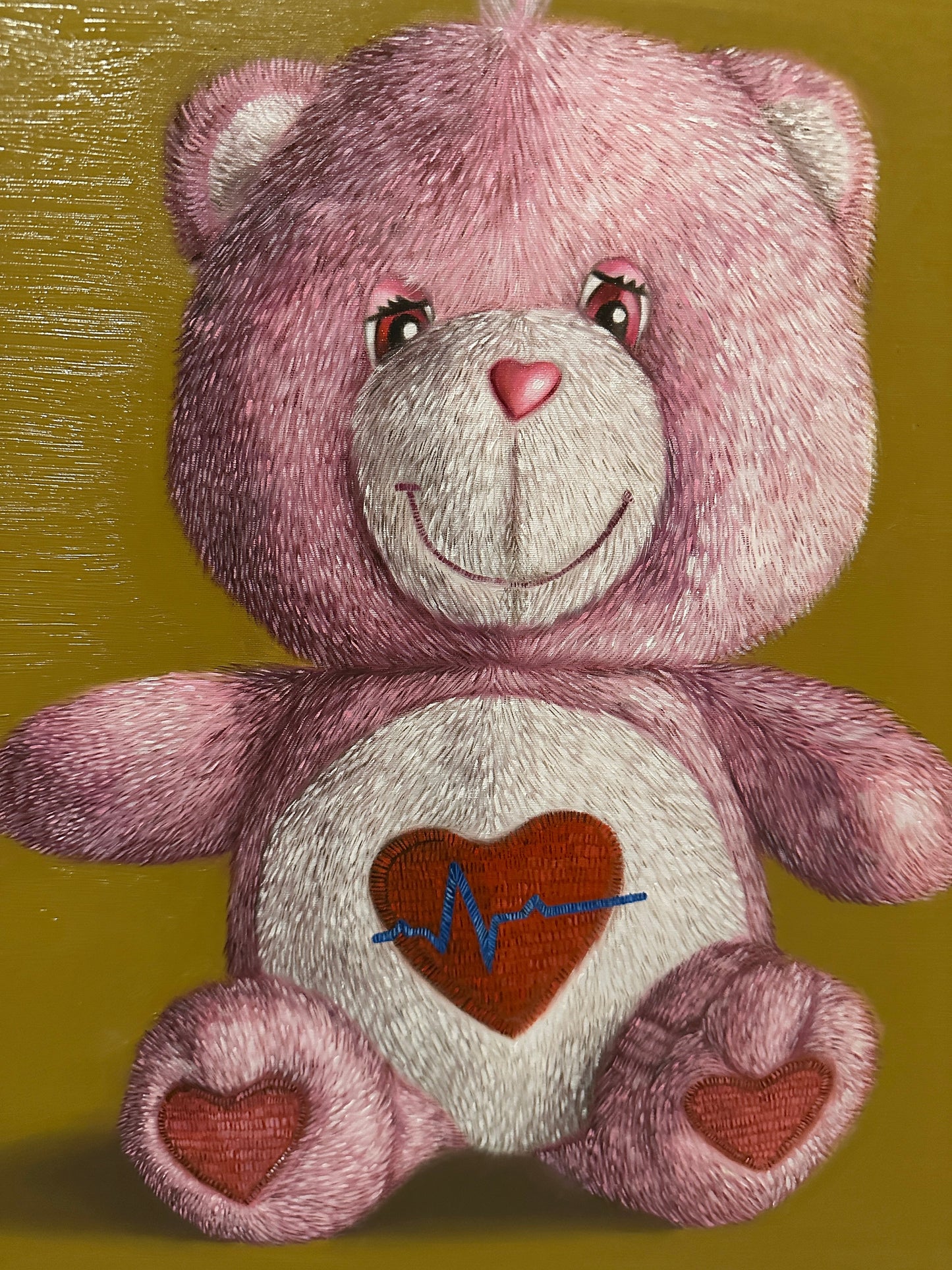 Dans ce tableau, un Bisounours rose au design doux incarne l'essence même d'un soignant ou d'une infirmière. L'ours a un nez en forme de cœur, un visage heureux et une fourrure soyeuse et texturée. Un cœur rouge avec une ligne de battement de cœur bleue sur son ventre représente la compassion et le bien-être. La notion d'amour et de soin est encore accentuée par des accents de cœur supplémentaires sur ses pattes. La couleur rose vif de l'ours est soulignée par le fond jaune moutarde doux, qui crée également une atmosphère sereine et bienveillante. Cette œuvre d'art célèbre les personnes qui consacrent leur vie à aider les autres et respire le positivisme.
