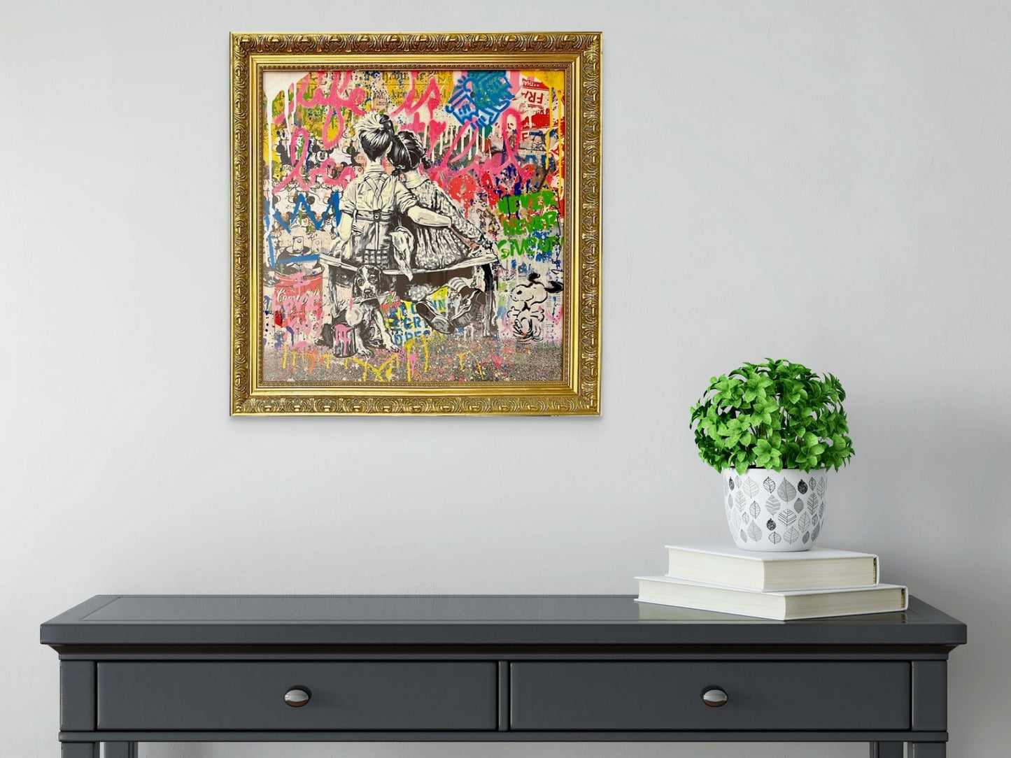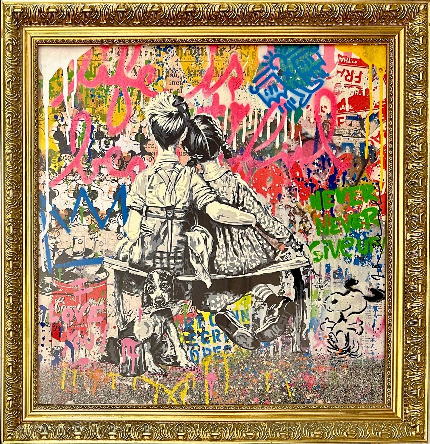 Figure provocatrice du street art, Mr. Brainwash (pseudonyme de Thierry Guetta) s'approprie des images issues de la culture populaire et de l'histoire de l'art et les intègre dans ses sérigraphies et sculptures ironiques. Les textes colorés et l'iconographie de M. Brainwash reflètent la sensibilité inspirée par le graffiti de l'artiste et sapent sa source originale. L'artiste s'est fait connaître en tant que personnage principal du film réalisé par Banksy en 2010, Exit Through the Gift Shop . Aujourd'hui, son travail se vend jusqu'à six chiffres sur le marché secondaire. M. Brainwash a également conçu des pochettes d'albums pour Madonna et Rick Ross.