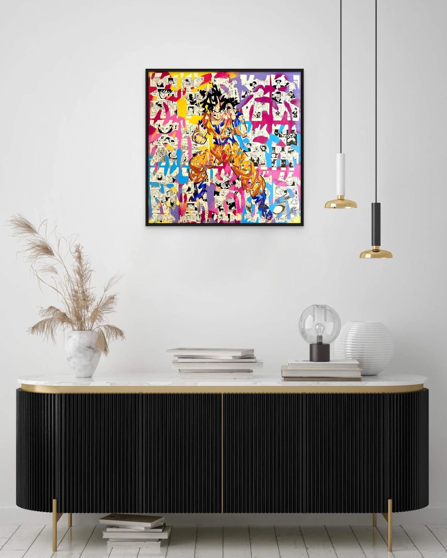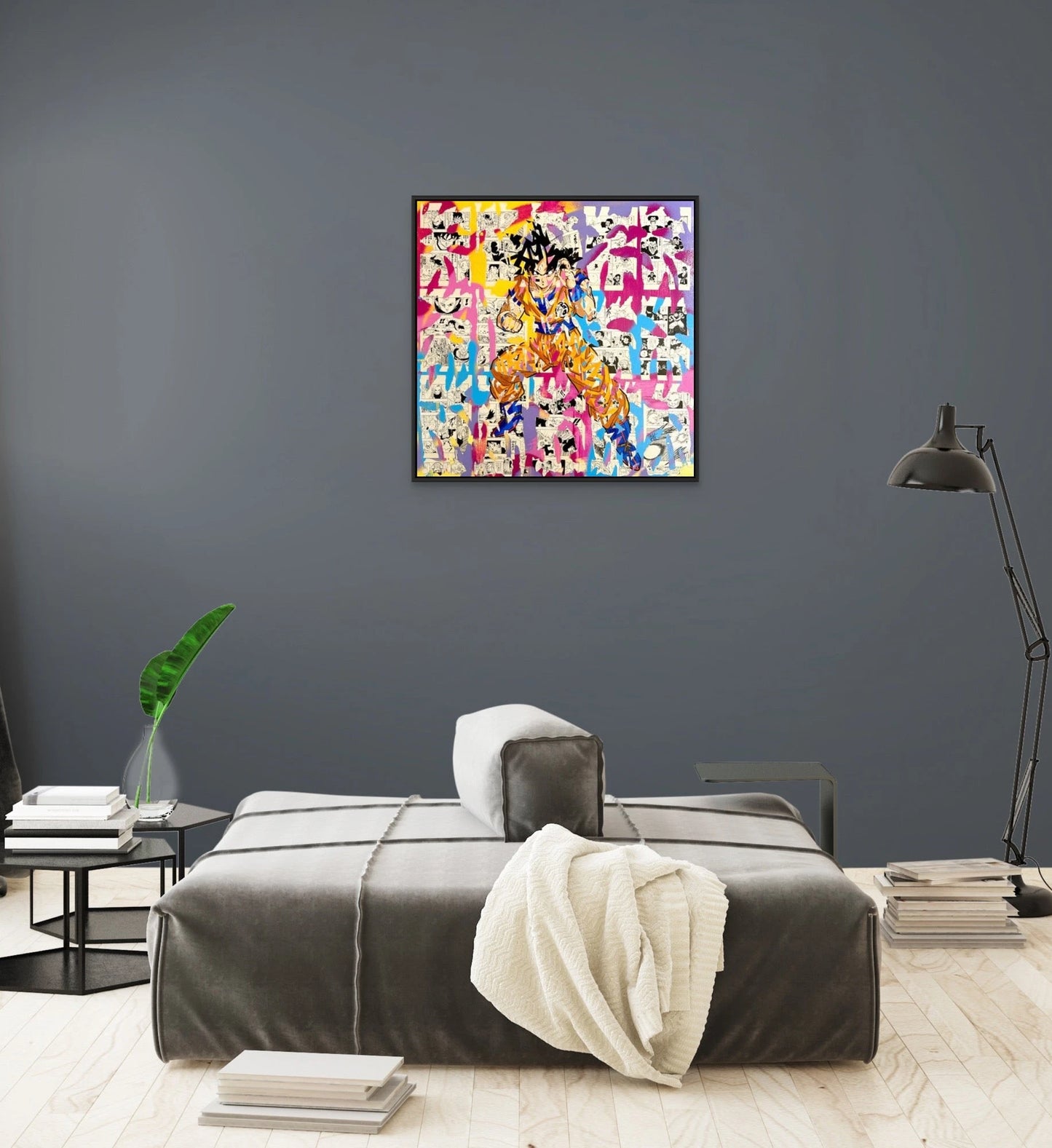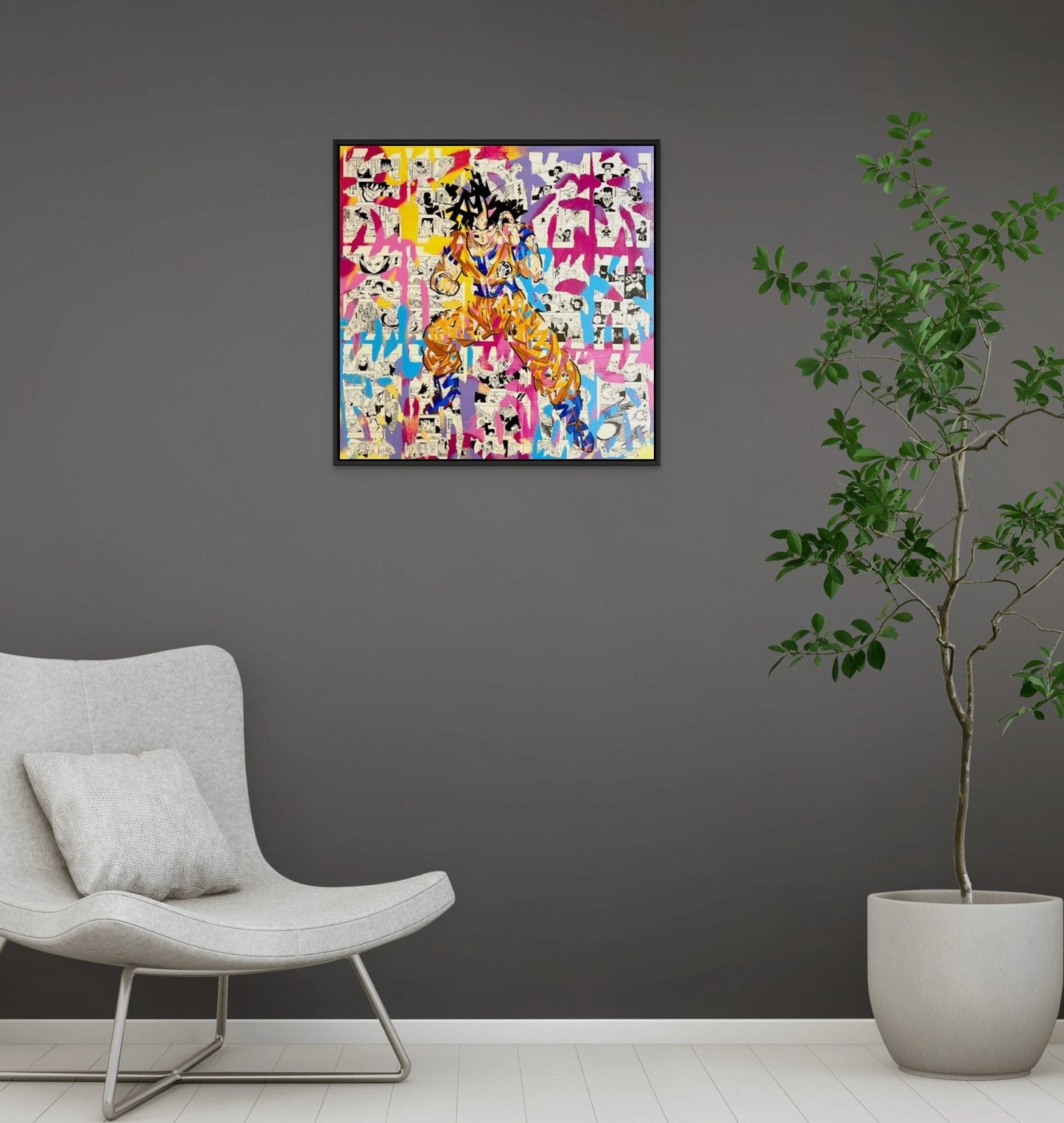 Peinture originale réalisée à partir de véritables pages de manga DragonBall.